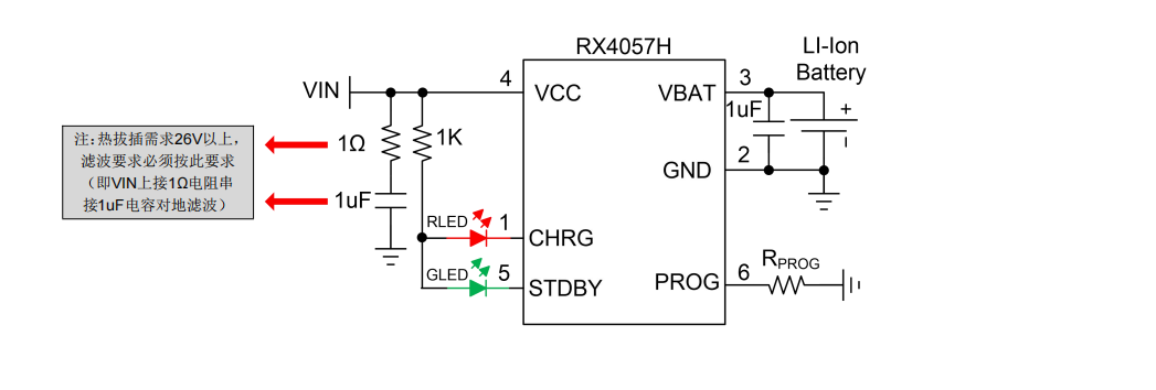 RX4057H 40V 耐壓,ESD(HBM)可達 7000V,帶 OVP 功能 1A 線性鋰電池充電管理芯片